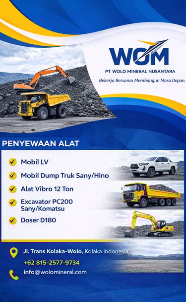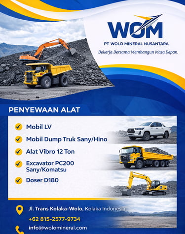 PT Wolo Mineral Nusantara, spesialis penyewaan kendaraan dan alat berat untuk pertambangan.